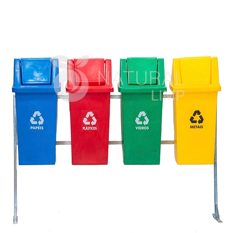 O suporte das lixeiras é super resistente em aço carbono galvanizado.